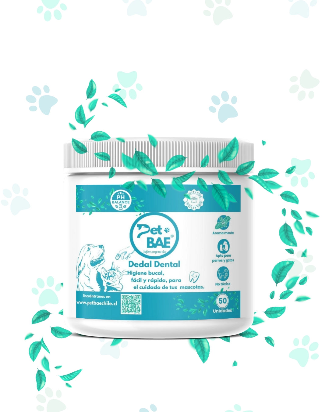 Dedal Dental Pet Bae son toallitas tipo dedal diseñadas para la limpieza bucal rápida y efectiva de perros y gatos. Su fórmula natural combate placa, sarro y mal aliento en segundos